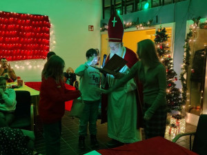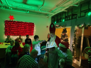 Ein besonderes Highlight war wie immer der Besuch des Nikolaus. Mit seinem großen roten Mantel und einem schweren Geschenkesack sorgte er für leuchtende Augen bei den Kindern. Jedes Kind erhielt eine liebevoll gepackte Weihnachtstüte und selbstverständlich gingen auch die Geschwisterkinder nicht leer aus. Die Freude war groß, als die Überraschungen ausgepackt wurden.
